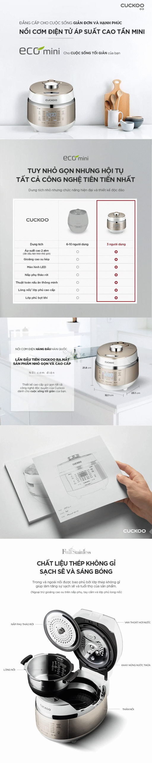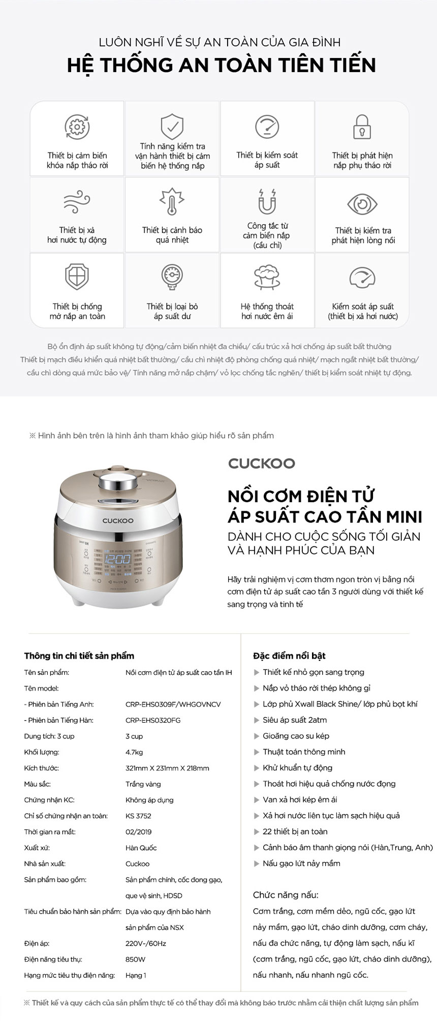 Nồi Cơm Điện Tử Áp Suất Cao Tần Cuckoo 0.5L
