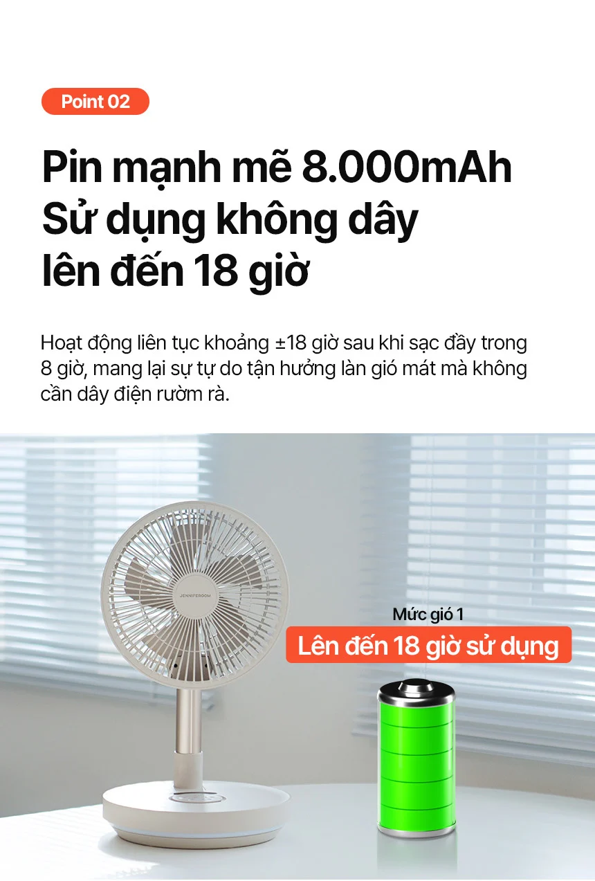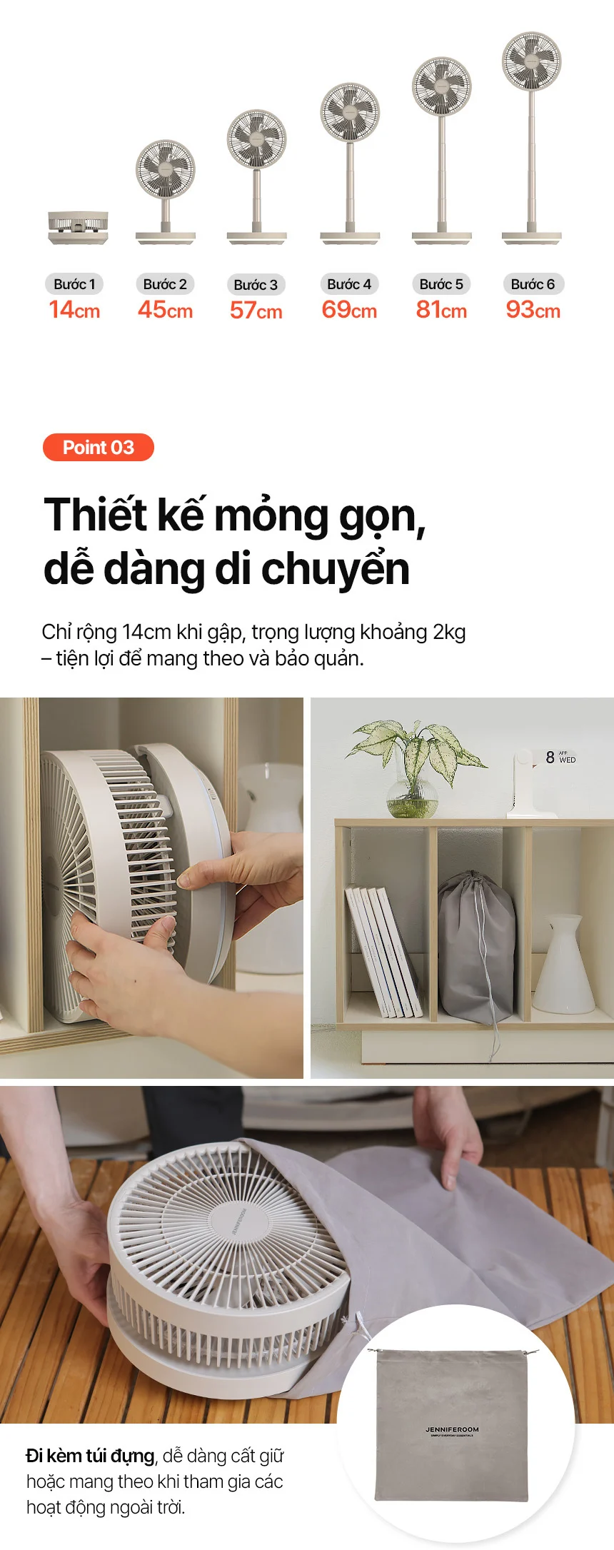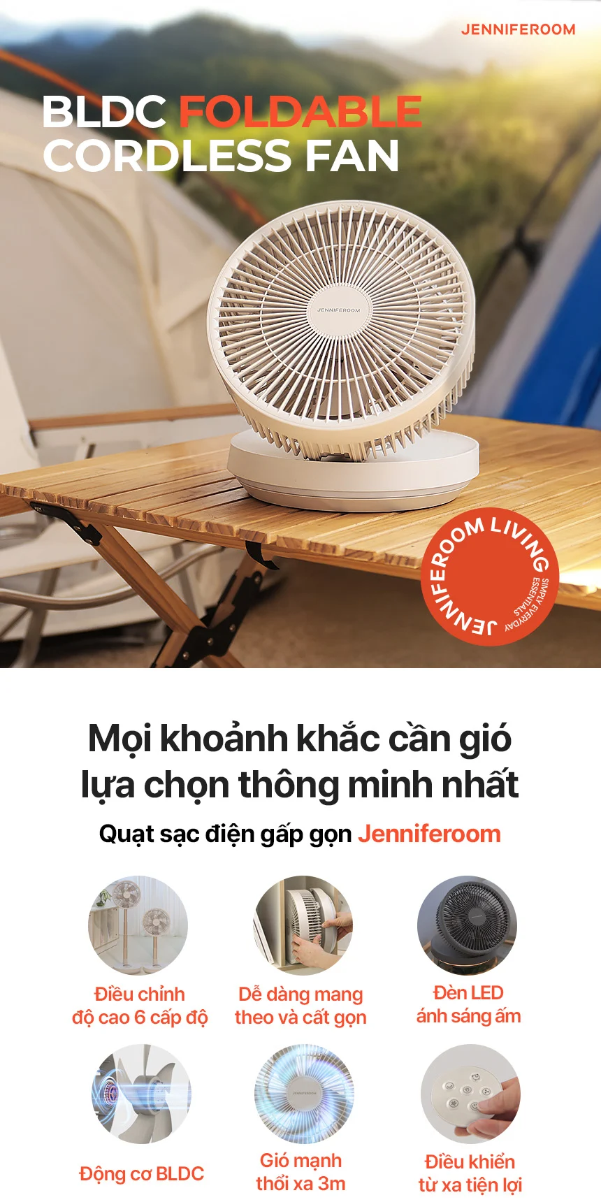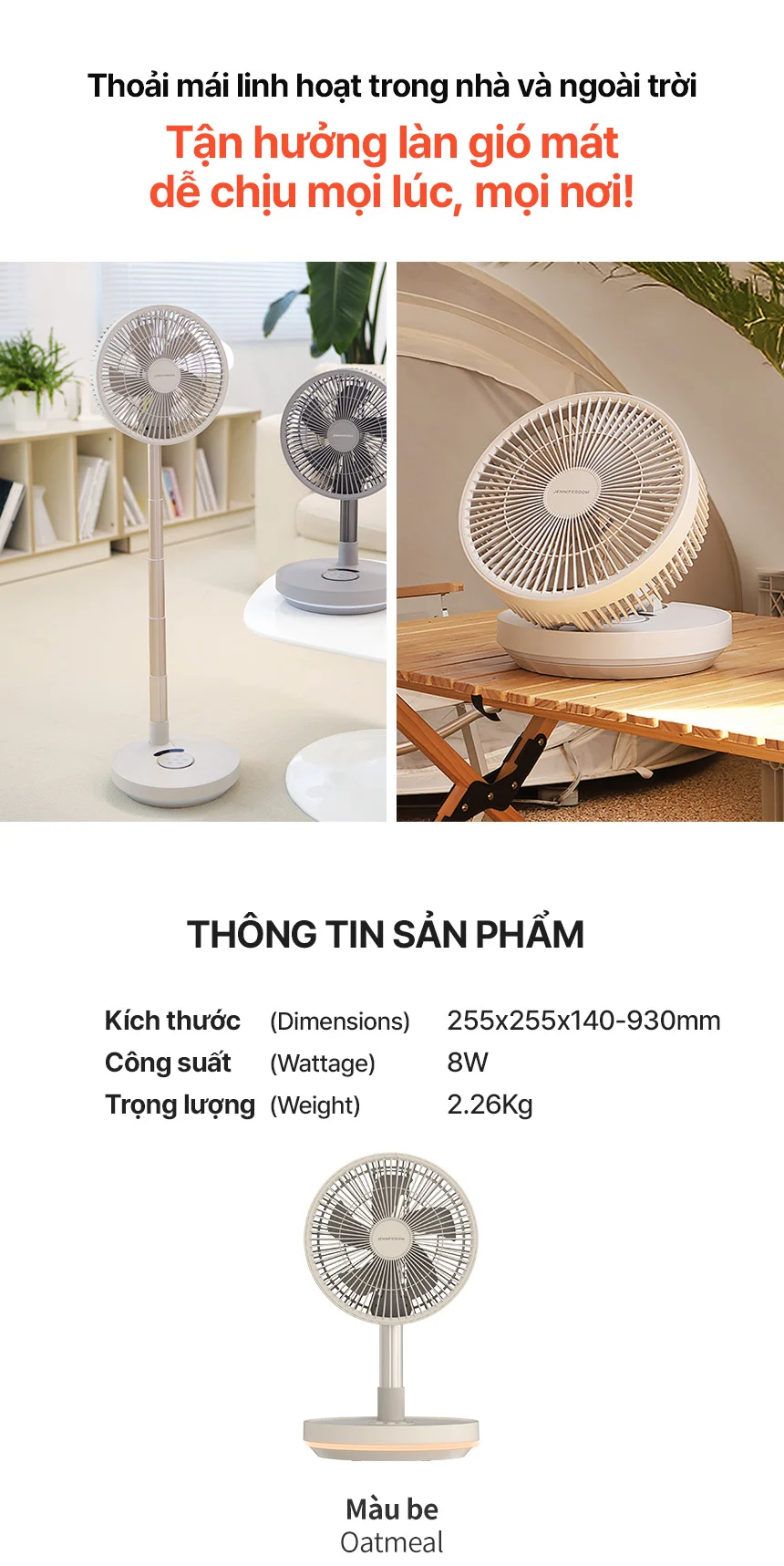 JRL-FF085COM – Quạt sạc điện gấp gọn Jenniferoom Foldable fan 8W, 8000mAh – Màu be