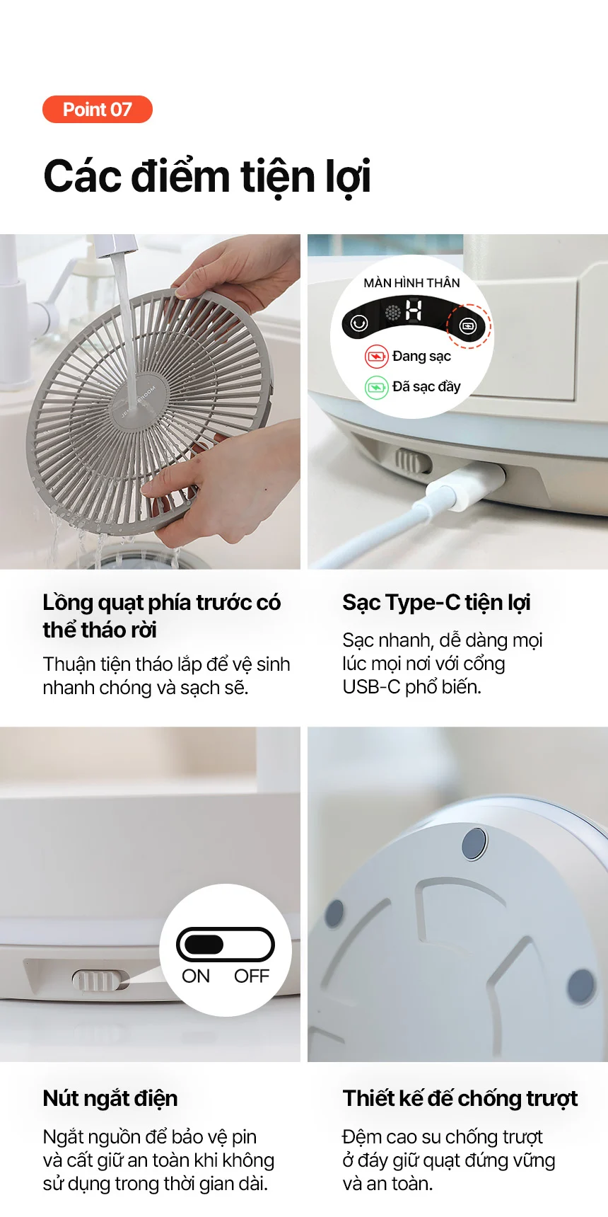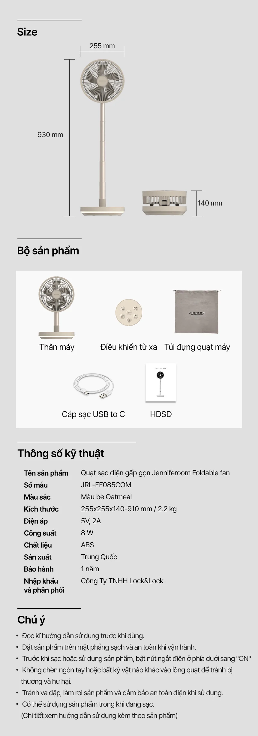 JRL-FF085COM - Quạt sạc điện gấp gọn Jenniferoom Foldable fan 8W, 8000mAh - Màu be - LocknLock Cần Thơ